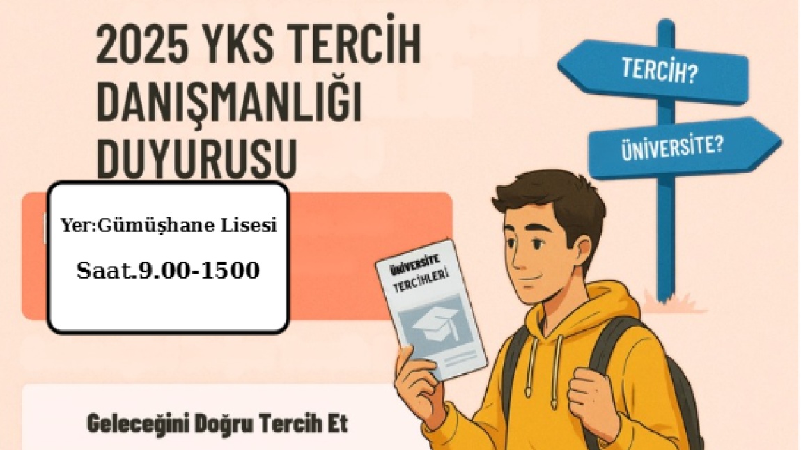 Okulumuz Rehber Öğretmeni Ali ÇİLDOĞAN eşliğinde etkin tercih danışmanlığı için 1-13 Ağustos tarihleri arasında sizleri okulumuza bekliyoruz.